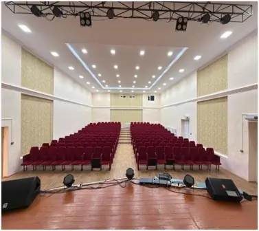 Мәдениет үйінің материалдық-техникалық базасы - көрермен залы, сахна, жарық және дыбыс беру құрылғылары, LED экран, музыкалық аспаптар, ұлттық және сахналық костюмдер, кеңсе және мультимедиялық техникамен толықтай жабдықталған.